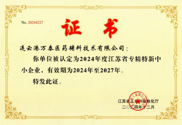 連云港萬(wàn)泰榮獲江蘇省專(zhuān)精特新中小企業(yè)